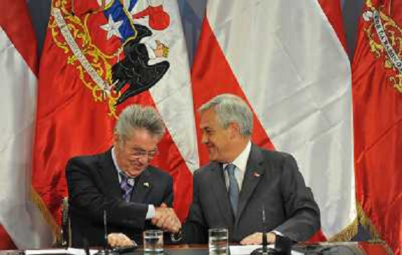 10/12/2012 Personaggi ITALY ONLY - Il presidente Cileno Sebastian Pinera con il presidente Austriaco Heinz Fischer a Santi ...