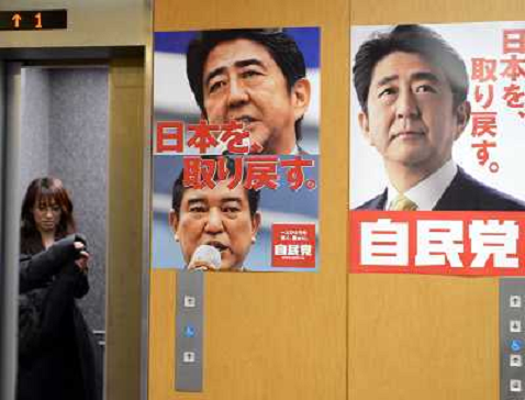 14/12/2012 Personaggi ITALY ONLY - Manifesti elettorali del leader giapponese del principale partito di opposizione libera ...