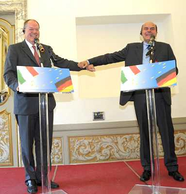 31/10/2012 Personaggi ITALY ONLY - Conferenza stampa, dopo un incontro sull'economia a Berlino, Germania, 30 ottobre 2012
