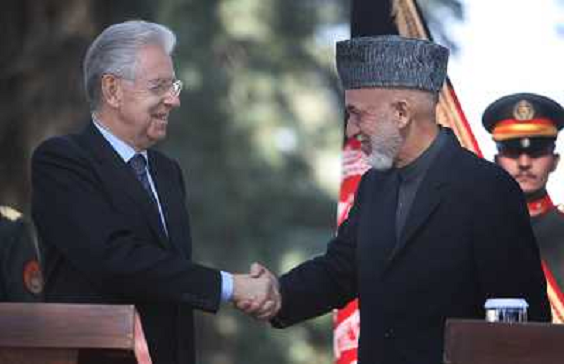 05/11/2012 Personaggi ITALY ONLY - Il presidente afghano Hamid Karzai incontra il primo ministro italiano Mario Monti a Ka ...