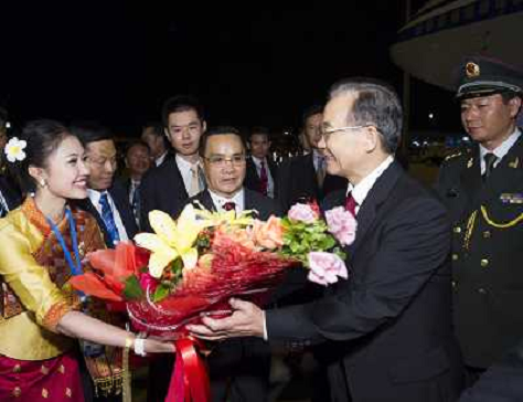 05/11/2012 Personaggi ITALY ONLY - Il premier cinese Wen Jiabao al suo arrivo a Vientiane, capitale del Laos, il 4 novembr ...