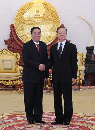 05/11/2012 Personaggi ITALY ONLY - Il premier cinese Wen Jiabao incontra il presidente Lao Choummaly Saygnasone a Vientian ...