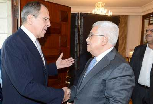 07/11/2012 Personaggi ITALY ONLY - Il presidente palestinese Mahmoud Abbas con il Ministro degli Esteri russo Sergey Lavro ...