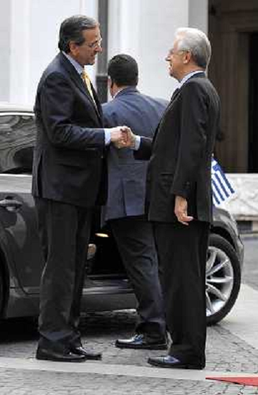 21/09/2012 Personaggi Il premier Mario Monti incontra a palazzo Chigi il Primo Ministro greco, Antonio Samaras - Roma 21/0 ...