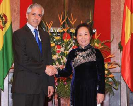 26/09/2012 Personaggi ITALY ONLY - Il Vice Presidente vietnamita Nguyen Thi Doan incontra il vicepresidente Boliviano Alv ...