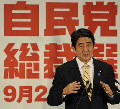 27/09/2012 Personaggi ITALY ONLY l'ex primo ministro Shinzo Abe partecipa a una conferenza stampa dopo la vittoria nelle e ...