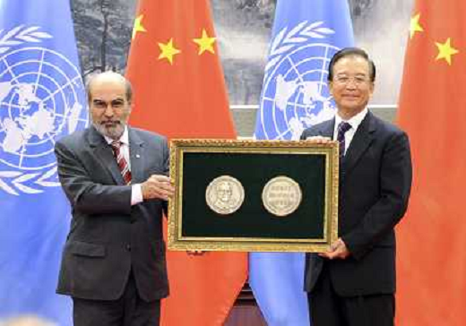03/10/2012 Personaggi ITALY ONLY - Il premier cinese Wen Jiabao durante una cerimonia di attribuzione della Medaglia Agric ...