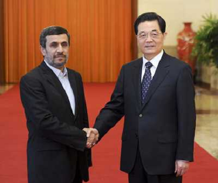 09/06/2012 Personaggi ITALY ONLY - Il presidente cinese Hu Jintao con il Presidente iraniano Mahmoud Ahmadinejad nel corso ...