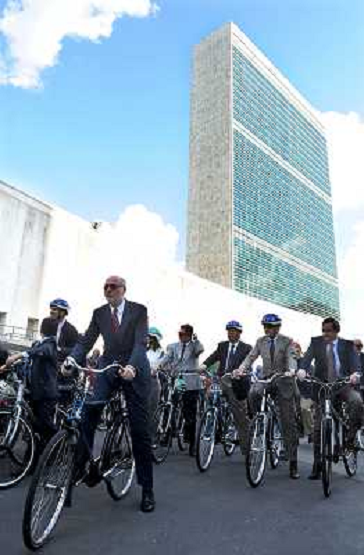 09/06/2012 Personaggi ITALY ONLY - Il segretario Generale dell'ONU Ban Ki-moon durante la manifestazione corsa in biciclet ...