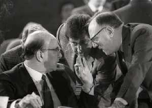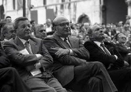 21/10/2021 Personaggi BETTINO CRAXI CON RINO FORMICA E CLAUDIO SIGNORILE NELL'ANNO 1987 A RIMINI AL CONGRESSO DEL PSI