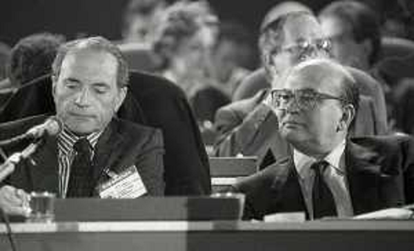 21/10/2021 Personaggi BETTINO CRAXI CON ENRICO MANCA A RIMINI NELL'ANNO 1987 AL CONGRESSO DEL PSI