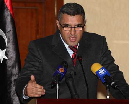 27/01/2012 Personaggi ITALY ONLY - TRIPOLI - Il ministro libico Fawzi Abdelali parla in una conferenza stampa a Tripoli, i ...
