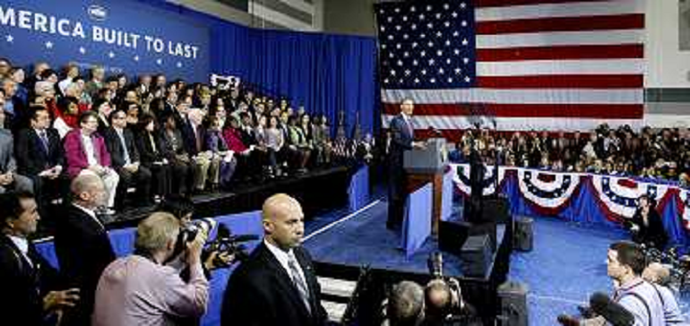 02/02/2012 Personaggi ITALY ONLY - USA: Il presidente americano Barack Obama parla durante un comizio a Falls Church in V ...