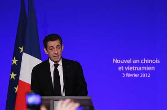 04/02/2012 Personaggi ITALY ONLY - Francia: Il presidente francese Nicolas Sarkozy partecipa alla cerimonia del nuovo anno ...