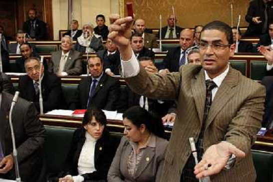 07/02/2012 Personaggi ITALY ONLY - Egitto: Un membro del parlamento mostra proiettili di gomma sparati dalla polizia duran ...