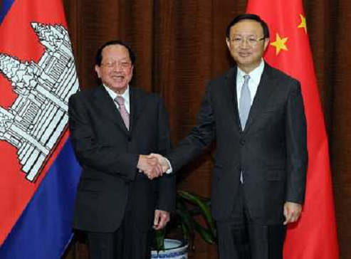 08/02/2012 Personaggi ITALY ONLY - PECHINO Ministro degli esteri cinese Yang Jiechi incontra Hor Namhong, il vice primo ...
