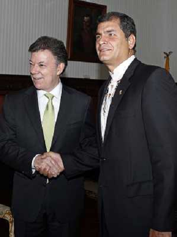 21/12/2011 Personaggi ITALY ONLY - Il presidente dell'Ecuador Rafael Correa incontra il presidente della Colombia Juan Man ...