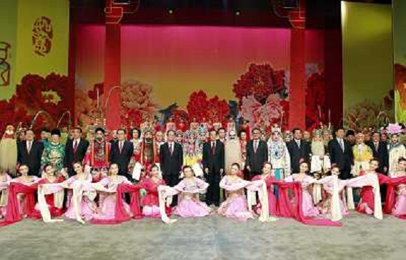 29/12/2011 Personaggi ITALY ONLY: LE ALTE CARICHE DEL GOVERNO CINESE POSANO CON GLI ARTISTI DELL'OPERA DI PECHINO DOPO AVE ...