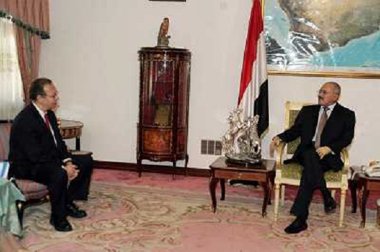 15/12/2011 Personaggi ITALY ONLY - Sanaa: Il presidente yemenita Ali Abdullah Saleh incontra l'inviato delle Nazioni Unit ...
