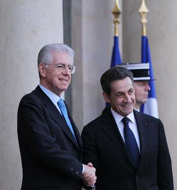 09/01/2012 Personaggi ITALY ONLY - Francia: Il presidente francese Nicolas Sarkozy incontra in visita il Primo Ministro it ...