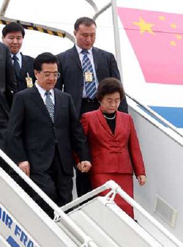 02/11/2011 Personaggi ITALY ONLY: FRANCIA - IL PRESIDENTE CINESE HU JINTAO AL SUO ARRIVO ALL'AEROPORTO DI NIZZA. PARTECIPE ...