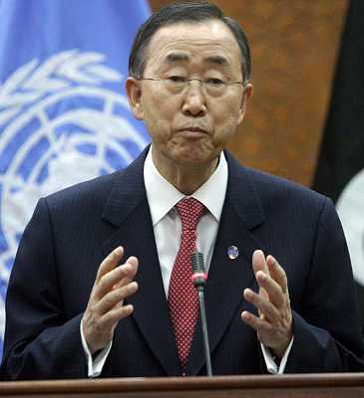 03/11/2011 Personaggi ITALY ONLY - Libia: Il Segretario Generale dell'ONU Ban Ki-moon durante una conferenza stampa congiu ...