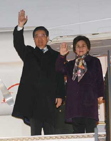 03/11/2011 Personaggi ITALY ONLY - Il presidente cinese Hu Jintao e sua moglie Liu Yongqing al loro arrivo all'aeroporto ...