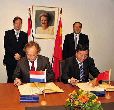 03/11/2011 Personaggi ITALY ONLY - Paesi Bassi: Jiang Zengwei, vice ministro del Ministero del Commercio cinese, firma un ...