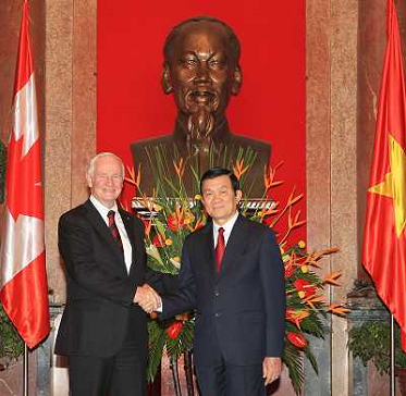 17/11/2011 Personaggi ITALY ONLY - Vietnam: Il presidente vietnamita Truong Tan Sang riceve la visita del governatore gene ...