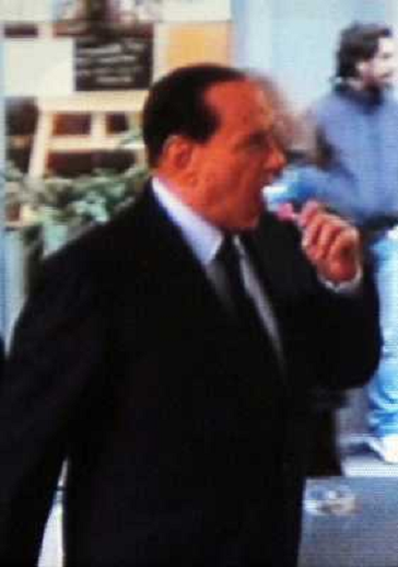 22/11/2011 Personaggi SILVIO BERLUSCONI ESCE DA UN BAR CON UN CHUPA - CHUPA PRIMA DI ENTRARE IN TRIBUNALE . C.so di PORT ...