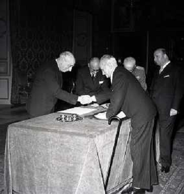 07/05/2021 Personaggi ATTILIO PICCIONI AL GIURAMENTO PER IL GOVERNO SCELBA DAVANTI A LUIGI EINAUDI A ROMA NELL'ANNO 1955-1 ...