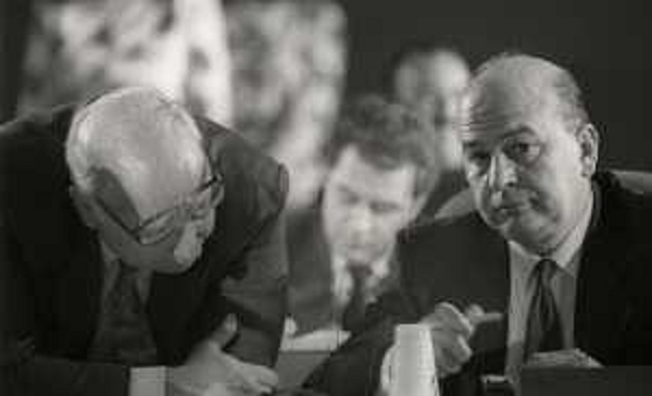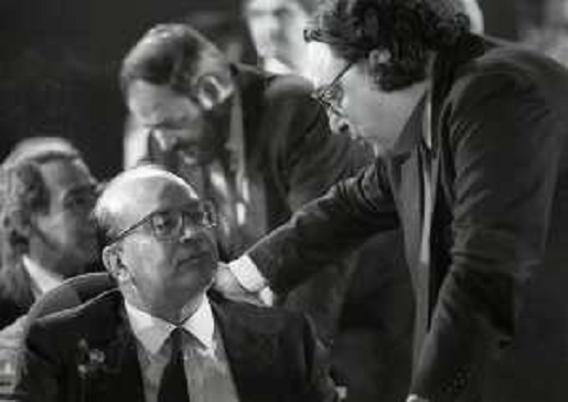 08/10/2021 Personaggi BETTINO CRAXI CON GIORGIO RUFFOLO A RIMINI NELL'ANNO 1987 AL CONGRESSO DEL PSI