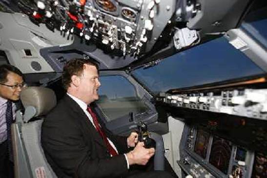 20/07/2011 Personaggi ITALY ONLY - Il Ministro degli Esteri canadese John Baird cerca di pilotare un simulatore di volo in ...