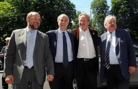 23/05/2011 Personaggi GIULIANO PISAPIA CON MARTIN SCHULTZ, CHRISTIAN UDE E FREDDY THIELEMANS