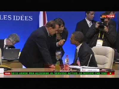 12/06/2023 Personaggi Francia: La sequenza video del presidente Silvio Berlusconi che si rivolge al presidente Americano B ...