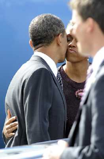 26/05/2011 Personaggi ITALY ONLY - Il presidente Barack Obama guarda come la First Lady Michelle Obama " spilla " una pin ...