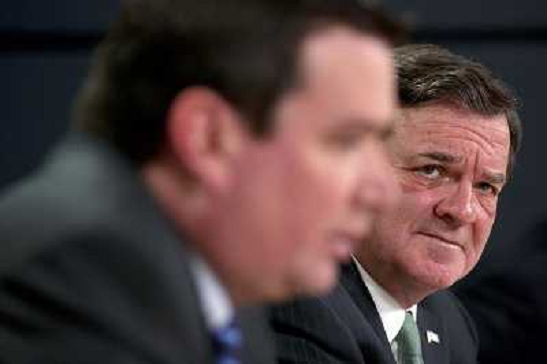 19/01/2011 Personaggi ITALY ONLY - OTTAWA , Il Ministro delle Finanze Canadese Jim Flaherty durante una conferenza stampa ...
