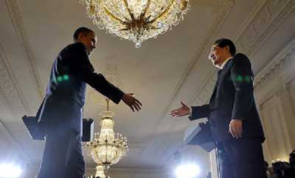 20/01/2011 Personaggi ITALY ONLY - Il presidente cinese Hu Jintao in visita alla Casa Bianca con il presidente americano B ...