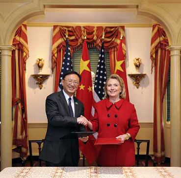 21/01/2011 Personaggi ITALY ONLY - WASHINGTON, 19 gennaio 2011 () - Il ministro degli Esteri cinese Yang Jiechi (L) string ...