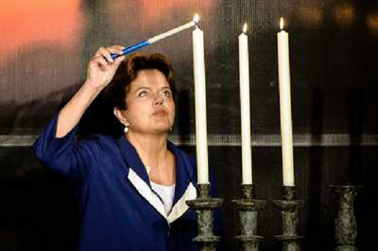 30/01/2011 Personaggi ITALY ONLY - Brasile: Il presidente brasiliano Dilma Rousseff accende una candela nel corso di una c ...