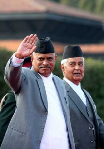 30/01/2011 Personaggi ITALY ONLY - Nepal: Il presidente Nepalese Ram Baran Yadav saluta prima della partenza per l'India p ...