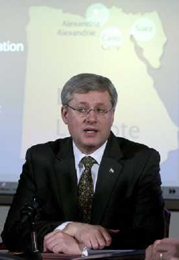 01/02/2011 Personaggi ITALY ONLY - IL PRIMO MINISTRO CANADESE IN UN BRIEFING CON IL SUO MINISTRO DEGLI ESTERI SULLA SITU ...