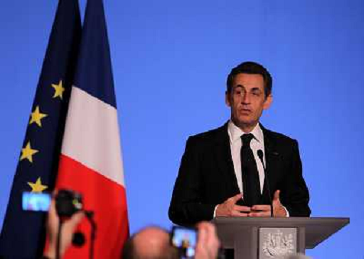04/02/2011 Personaggi ITALY ONLY - PARIGI: Il presidente francese Nicolas Sarkozy parla ai rappresentanti dei cinesi d'olt ...