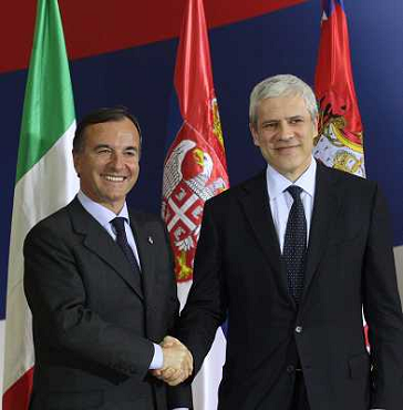 08/02/2011 Personaggi ITALY ONLY - IL MINISTRO DEGLI ESTERI FRANCO FRATTINI IN VISITA A BELGRADO