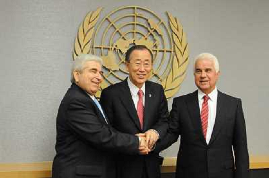 19/11/2010 Personaggi ITALY ONLY - New York: Il Segretario Generale dell'ONU Ban Ki-moon con il leader greco-cipriota Deme ...