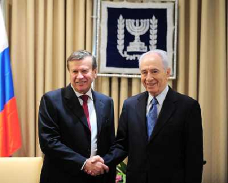 19/11/2010 Personaggi ITALY ONLY - Gerusalemme: Il presidente israeliano Shimon Peres incontra il vice primo ministro Russ ...