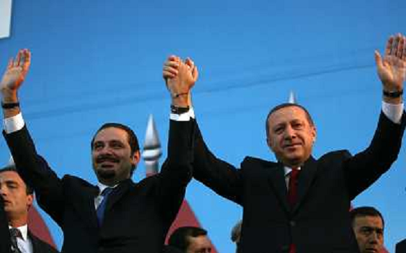 27/11/2010 Personaggi ITALY ONLY - BEIRUT VERTICE LIBANO-TURCHIA primo ministro libanese Saad Hariri (L) primo ministro t ...