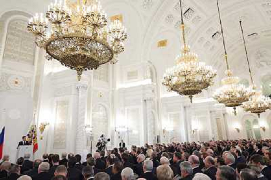 01/12/2010 Personaggi ITALY ONLY - Il presidente russo Dmitry Medvedev durante un' Assemblkea Federale al Kremlino . ...