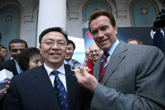 03/05/2010 Personaggi ITALY ONLY - LOS ANGELES: Il Governatore della California Arnold Schwarzenegger con Wang Chuanfu Pre ...
