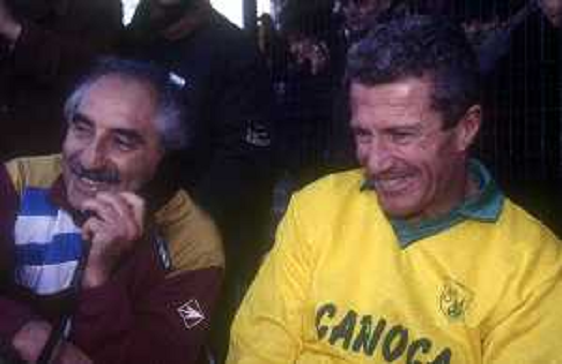 12-06-1985 VERONA QUARTI DI FINALE DI ANDATA DI COPPA ITALIA VERONA INTER 3-0 NELLA FOTO OSVALDO BAGNOLI CON FABIO MARANGON AG ALDO LIVERANI SAS